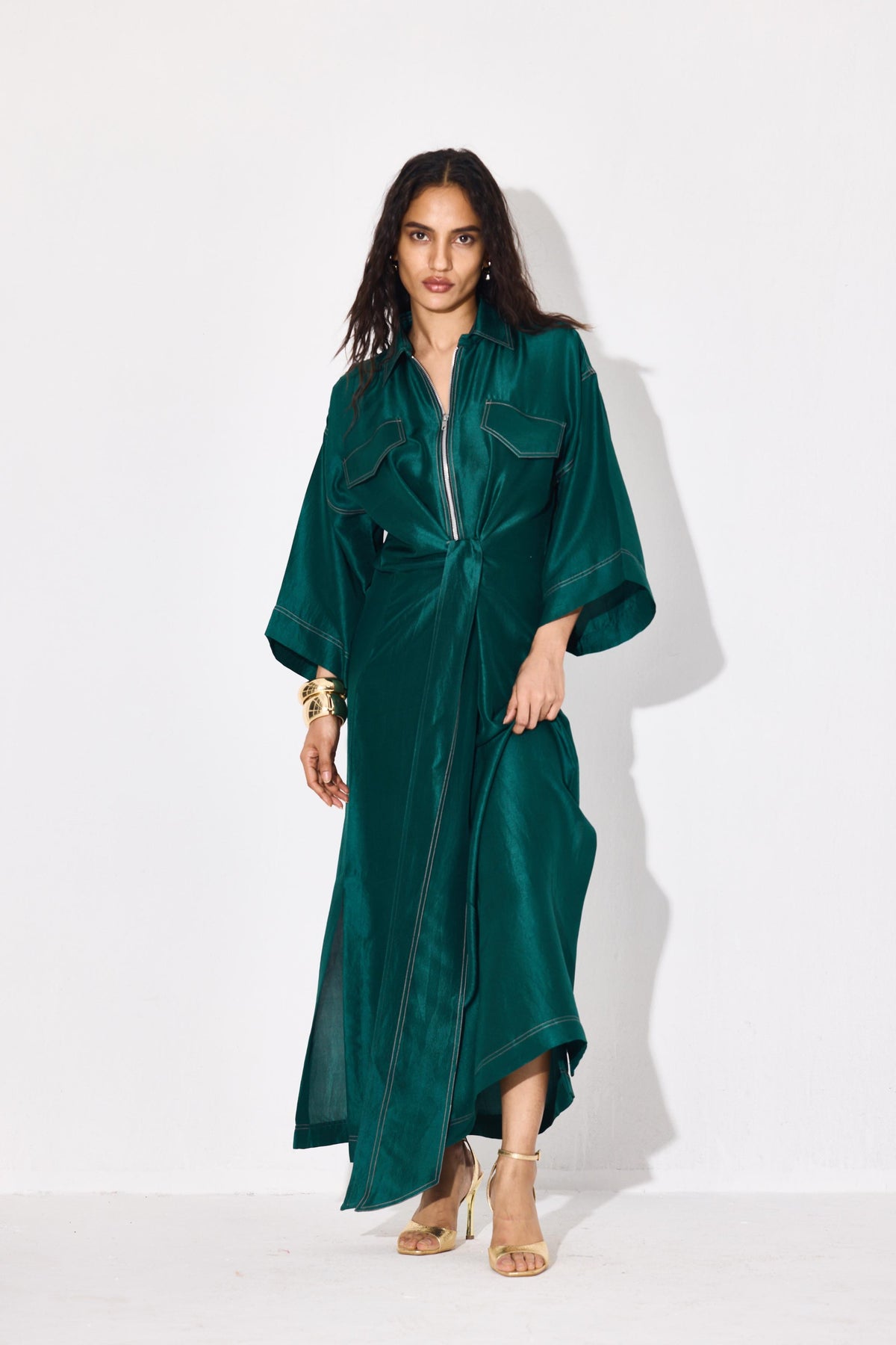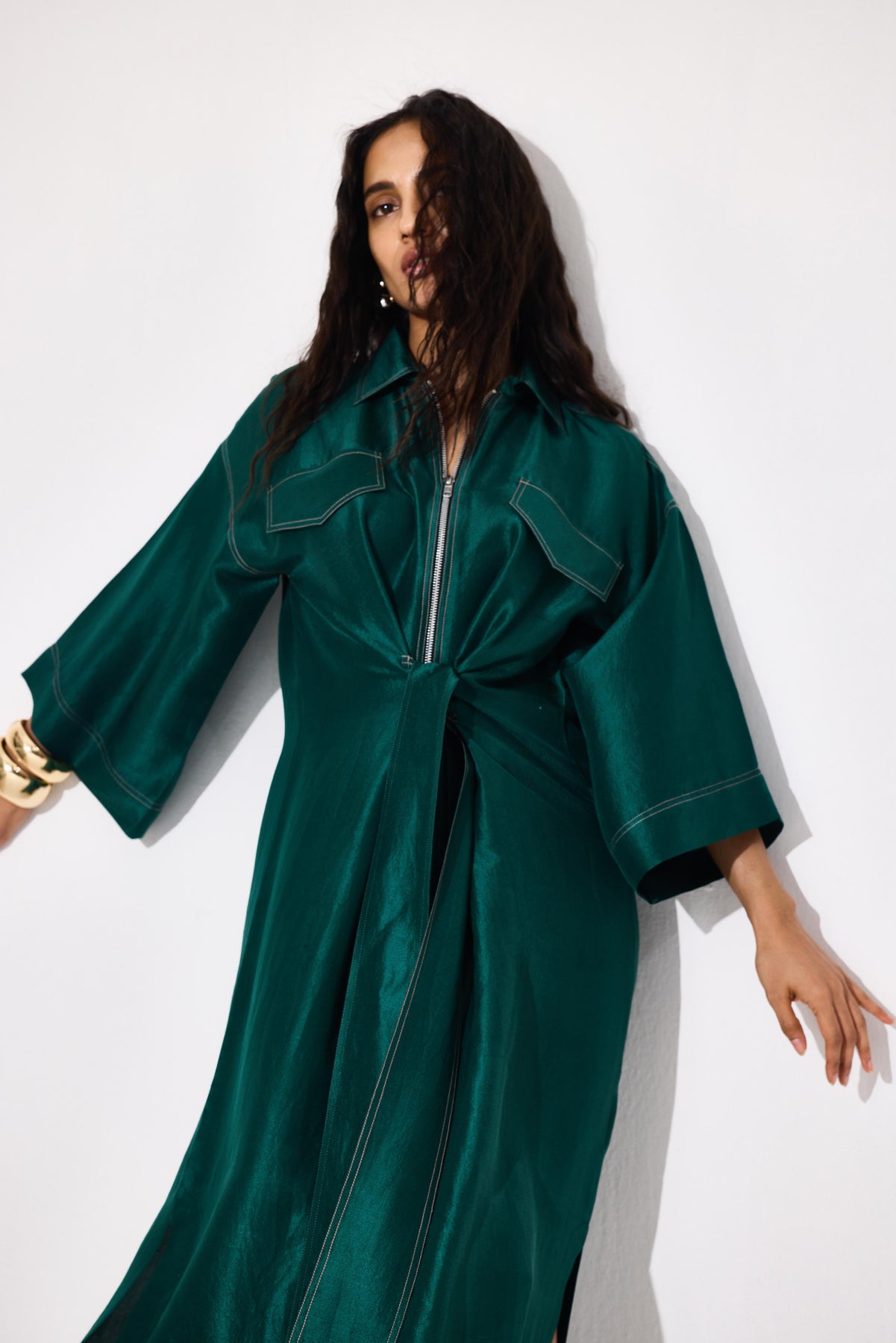 BOXY SHIRT DRESS WITH ZIPPER CLOSURE AND ATTACHED BELT